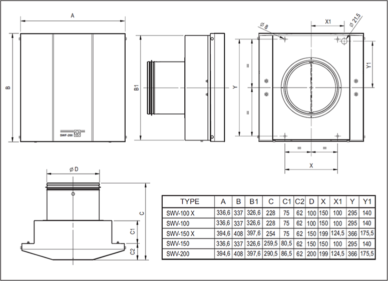 All SWF series models incorporate a powerful external rotor motor that has been factory matched to a non-overloading backward curved centrifugal fan wheel.